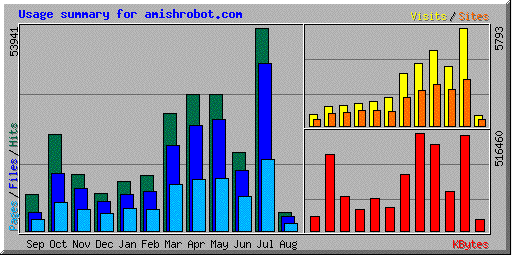 As of August 2nd, Amishrobot.com has been around for two years. Actually the real anniversary was probably last month some time, but August 02, 2001 is the date of the first post on the site. As a courtesy to Amishcorp™ stockholders, a two-year report: