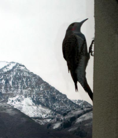 There, in a third-floor pillar of our office, was a woodpecker peering quizzically at me from the perfect circle he had pecked right through the stucco. He was merrily expanding it by scooping out the insulating foam.