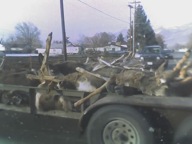Where do I live that I see things like this?! Just having this truck drive by within 5 miles of my house will likely have lowered my property values for the next ten years. Unless these are not actually road kill being collected, but are the aftermath of a deer slaying robot running around in the mountains. In that case my property values just sky rocketed.