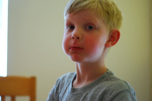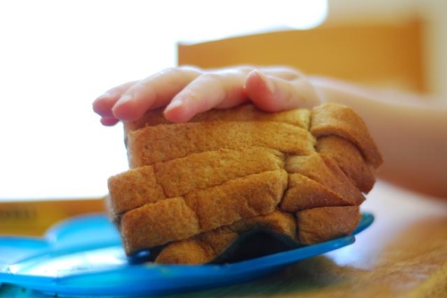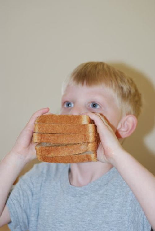 May 21, 2007 Here is what happens if your 5 year old says he is hungry and you tell him to wait a minute and you will make something and he doesn't feel like waiting. 5 slices of bread and an enormous amount of peanut butter. He ate almost the whole thing.
