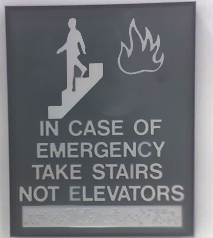 I am not sure this imagery really gives the message the designers were looking for, unless of course that message was, “In Case of Fire Accept Fate Stoically.”